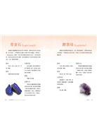 ◎列明99種水晶的簡要資訊,包括顏色、主要用途、對應脈輪及建議放置方式。