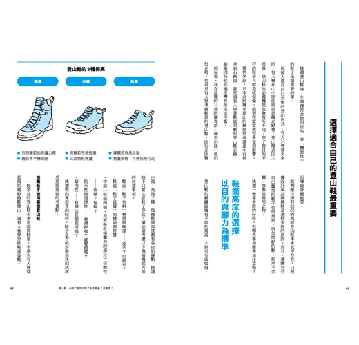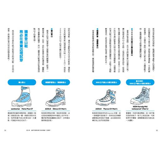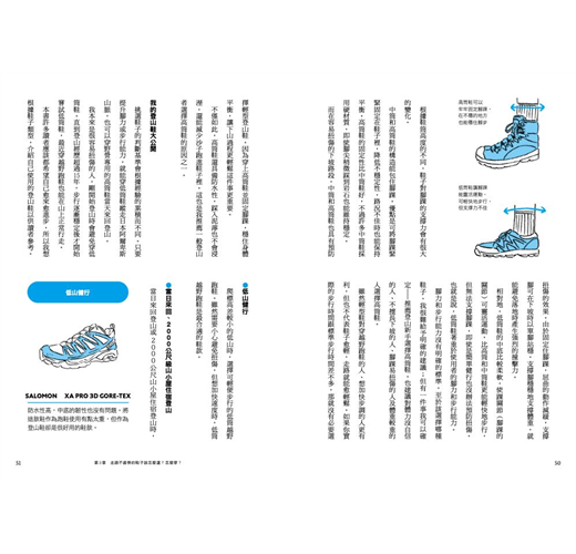 ◎隨書附「登山能力檢查表」,並搭配圖解,詳細說明鞋帶的繫法&動靜態的伸展步驟。