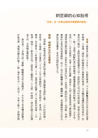 本書取名為《精品咖啡侍豆師》,「侍」這個字真心實義,我一生都在事奉咖啡這件事,在咖啡的世界裡,對咖啡的謙卑期待,就是希望能奉上一杯好的咖啡。為了這事,用了我一輩子的時間。每本書都將所知道的誠實呈現給各位,也請指教雅正,謝謝。另外,這本書沒有表格,也沒有數據說明,我認為這才是烘豆的正確方式。