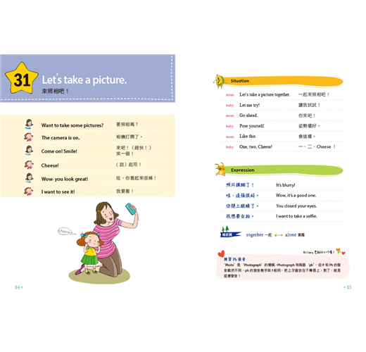 作者以實際在美國的生活經歷提供寶貴的經驗分享,包含美國媽媽的親子互動,以及美國的生活習慣與文化等,如果可以更了解母語者的背景,就能更自然融入語言的學習中。