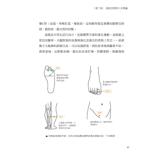 第四章的「生活應用」部分,提供居家生活練習的小訣竅,接著走出戶外,親近自然。我們列出農場的養生項目表,作為指引與參考,期望讀者走進自然,道法自然,向自然學習養生。