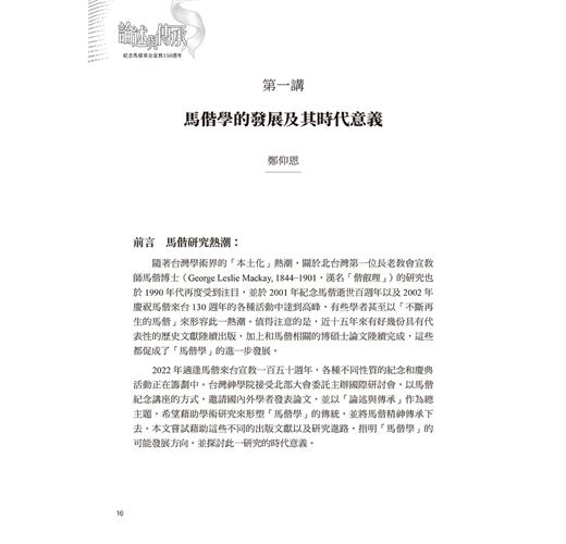 第一講 馬偕學的發展及其時代意義/鄭仰恩