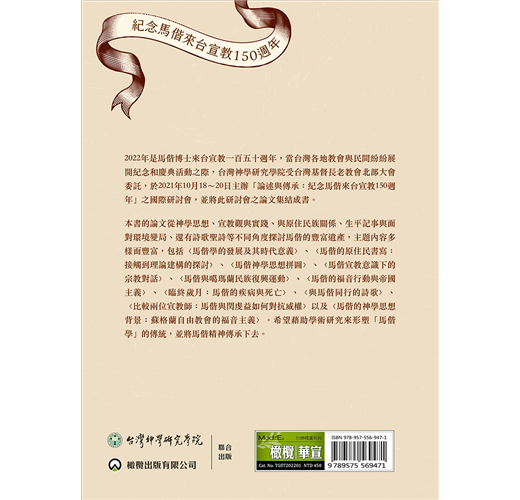 2022年是馬偕博士來台宣教一百五十週年,當台灣各地教會與民間展開紀念和慶典活動。台灣神學研究學院受北部大會委託,於2021年10月18~20日主辦主辦「論述與傳承:紀念馬偕來台宣教150週年」之國際研討會,並將此研討會之論文集結成書。