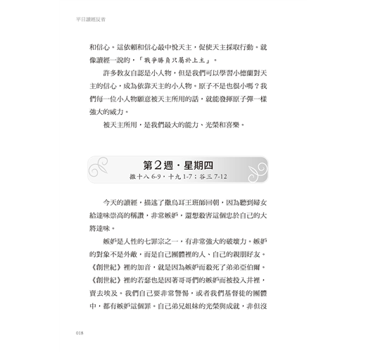 ◆ 可搭配《主日讀經反省》甲年、乙年、丙年系列一起閱讀,一年365天每日閱讀一篇,培養讀經好習慣,與主共融不間斷。