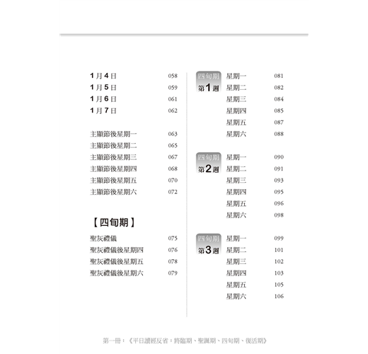 第一冊:《平日讀經反省:將臨期、聖誕期、四旬期、復活期》