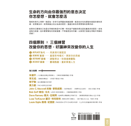 如果你已厭倦自己老是在同樣的軟弱中打轉,明知道不健康的想法是從魔鬼來的謊言,卻老是無力抵擋,這本書要幫助你突破重圍,不再當謊言的俘虜,以真理打造能在爭戰中得勝的思維!