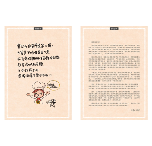 文末,必須感謝所有讀者對我前兩本書《會開瓦斯就會煮》、《會開瓦斯就會煮【續攤】》的支持與肯定,讓我榮登誠品書店與博客來網路書店暢銷排行榜百周之久!這對我而言真的是最大的鼓勵,因為有大家的支持,我才有更多創作的動力與靈感!未來,我會帶著大家的期待,不斷追求卓越,以及時時提醒自己莫忘初衷,繼續推出更多、更棒的作品!