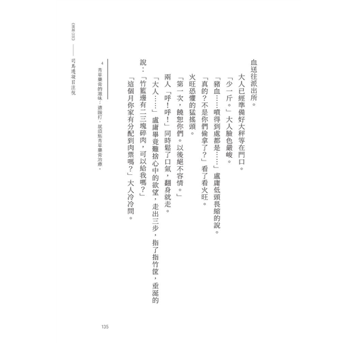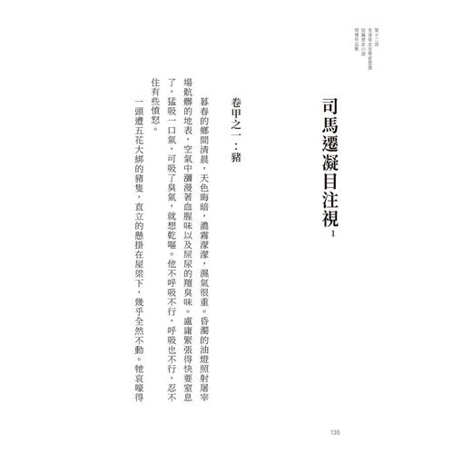 〈司馬遷凝目注視〉的作者絲毫不閃躲他們的立場與態度,義憤與指控躍然紙上,他對於掌握話語權資源者居然甘於戀殖、遮掩且美化之,氣沖牛斗,奮而為文,成了一支銳利的標槍,意在射向人心麻痺的群體,即使沒射中也要讓大家驚嚇叫嚷。最末節「開卷」以後設手法自我嘲諷,遂讓悲愴意味更深一層。