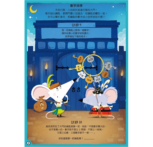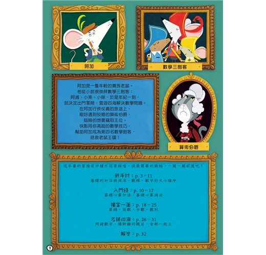 本書透過故事邀請小朋友用高超的數學技巧,幫助阿加成為第四名數學劍客,拯救老鼠王國!