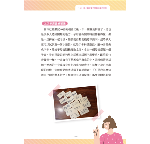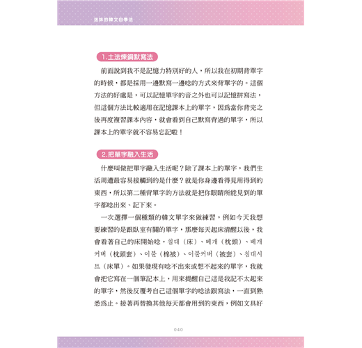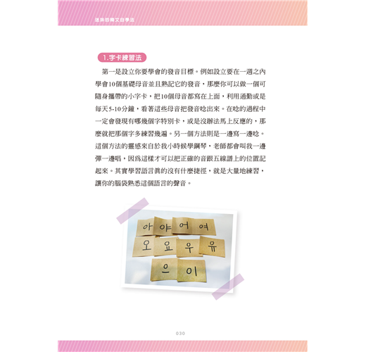 書中用幽默風趣的文字侃侃而談 LJ 一路從韓文麻瓜到現在成為老師、開辦線上課程甚至出書的心路歷程,歸納出方便又實用的自學建議,還附上 QR-CODE 可以隨時用影片輔助學習,讀起來一點也不像制式化的課本,反而是一起追星的歐膩和你聊天的感覺,讀著讀著,也因為太有共鳴就不小心笑出來了~