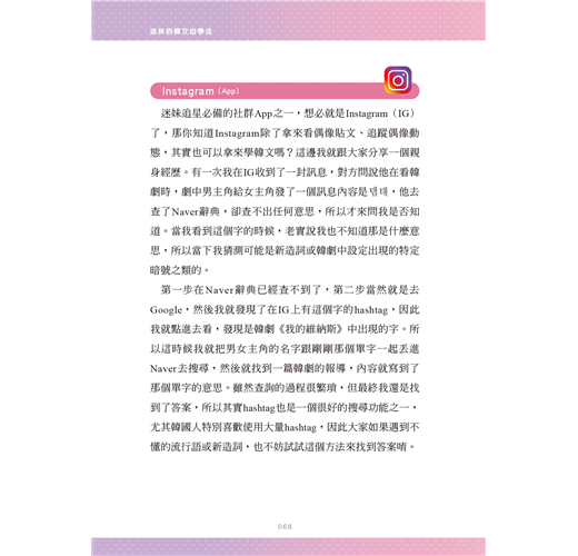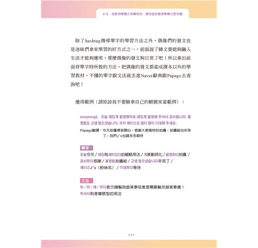 一直到現在,我有機會寫這本書來跟大家分享迷妹學韓文的方法,這一切其實都很不真實,感謝出版社給我機會讓我可以完成這個小小的迷妹夢想。