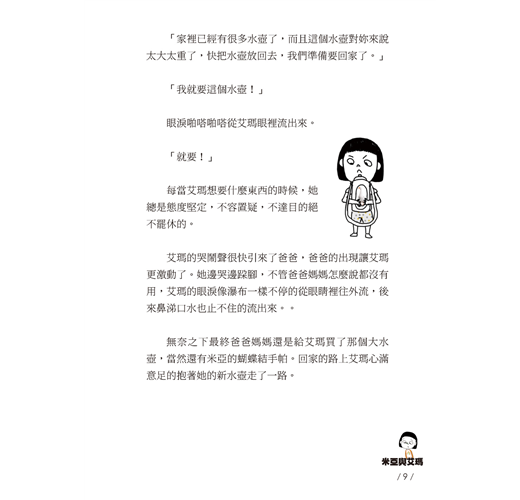 說到這裡,媽媽忍不住笑了出來,「看來這個水壺只能等艾瑪再大一點才能用了。」