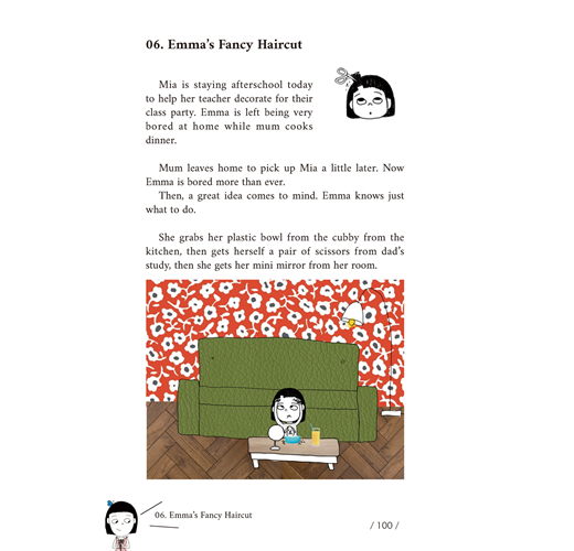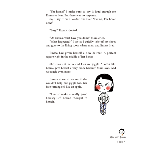 Mia is quiet and thoughtful, and prefers dresses with flowers on them, and anything and everything sparkly. While Emma is mom and dad’s biggest headache. Emma has the weirdest ideas and the most bizarre thoughts; you can never guess what Emma is up to next! Just like that, two very different sisters.