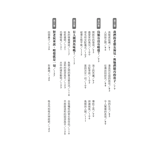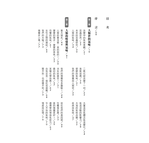 「身為一個近年投入動物『訊號溝通』與『行為認知』領域的研究者,我們深知人類感官世界的盲點:過度仰賴視覺與聽覺,而忽略了嗅覺與味覺的世界。確實,視覺和聽覺的能量形式,是人類最早可以用物理公式『量化』的感官;但是較難量化的嗅覺與味覺,卻抱存著更大無限的可能。本書帶您跳脫人類受限的感官世界,進入一個更廣大的認知空間。期待您也演化成一隻『嗅覺系』動物!」