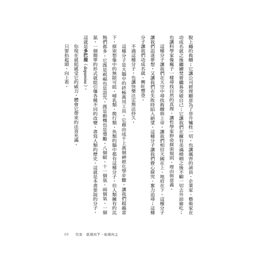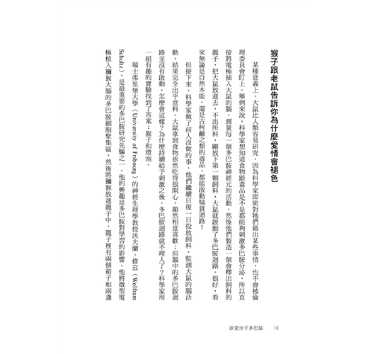 對我來說,以上這些場景都很常見,也很矛盾。若要追根究柢,找出背後的原因,那將是一個矛盾的開始。這本書化繁為簡,試著用「多巴胺」來解釋這一切。