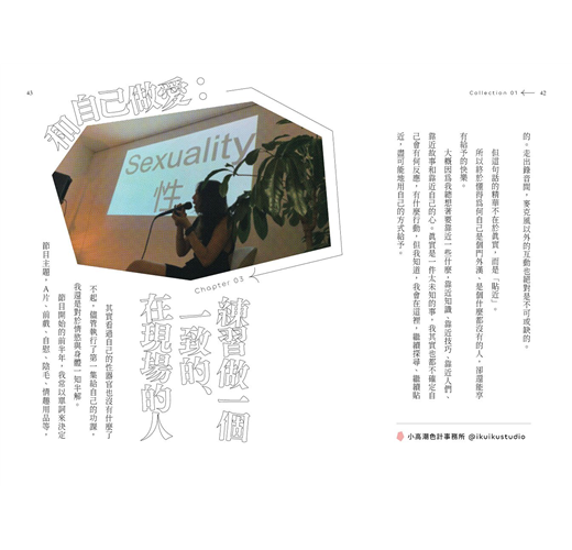 因為固執,她才會在性與愛這個無邊無際的領域走闖四年;因為沒自信,她要求自己做足功課、相信專業;因為不確定,她擁抱五花八門的議題與素材。