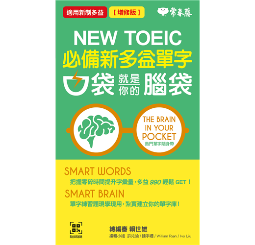 若想在多益考試中大放異彩,掌握關鍵字彙是奠定語意理解的基石。但您無需坐在書桌前苦讀單字書,只要善用零星時間,各位讀者便能為字彙學習打好基礎。為此,我帶領常春藤最菁英的團隊出版了《必備新多益單字—口袋就是你的腦袋》一書,用意是希望即將參與多益考試的讀者透由零碎時間持續提升字彙量。本書內容扎實而精要,若能善讀其內容,相信本書必會成為您考取多益金色證書的一大助力,最後也祝福各位讀者在多益考場上皆能勇奪高分!