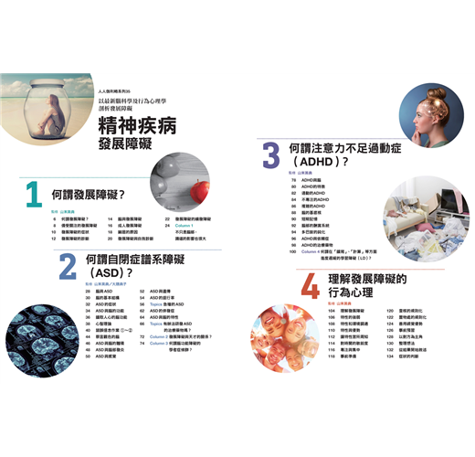 本書不僅探討發展障礙的症狀分類、與腦部的關係,也會介紹「成人發展障礙」以及「繭居」與發展障礙之間的關聯性。並且從最新腦科學的研究成果和見解等角度出發,說明自閉症譜系障礙(ASD)及注意力不足過動症(ADHD)的致病原因、傾向和研發出治療藥物的可能性。最後解說有發展障礙症狀的人該如何善用本身的特性,讓每天都能過得開心。