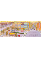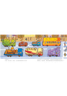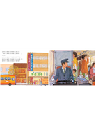 在第8 、9頁的馬路上,除了公車之外,還出現了各式各樣的交通工具,有載著木材的卡車、小汽車、水泥攪拌車、工程車、油罐車、電纜車等等,它們的造型都不同,畫得非常出色。