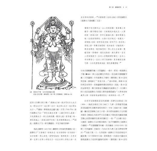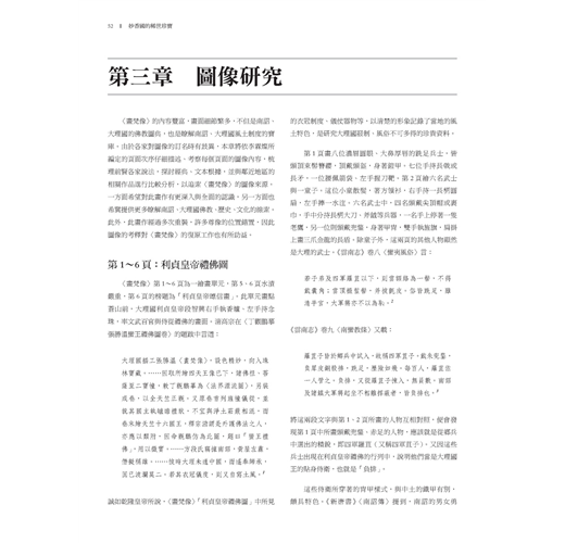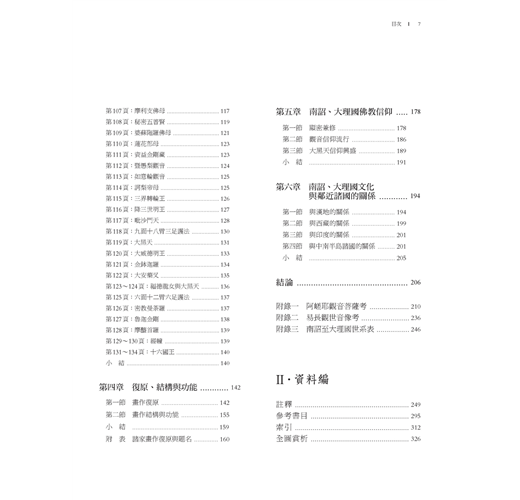 二、作者數度親赴雲南田野考察,本身又具文獻考據基礎,加之多年來不懈建立起佛教藝術資料庫,累積深厚的佛教藝術研究功底。書中即可見其運用「圖像志」研究方法,根據佛教經典、儀軌、圖像鈔等資料,鉅細靡遺考訂出〈畫梵像〉大小各尊像的尊格和身分等,並進而將畫作與傳世或考古出土文物相參照,還原畫作歷史情境,闡明畫中圖像在南詔、大理國流傳的狀況。