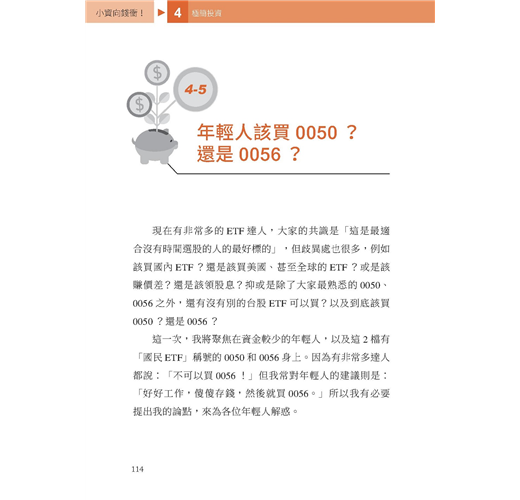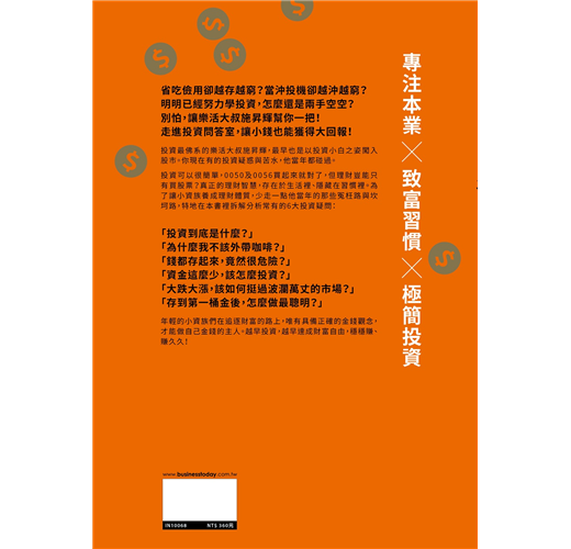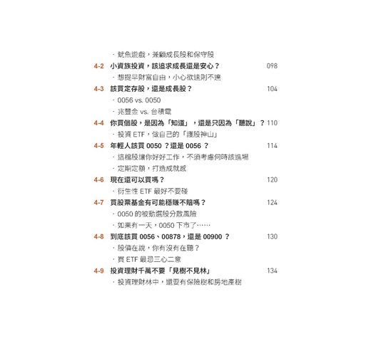 投資可以很簡單,0050及0056買起來就對了,但理財豈能只有買股票?真正的理財智慧,存在於生活裡、隱藏在習慣裡。為了讓小資族養成理財體質,少走一點他當年的那些冤枉路與坎坷路,特地在本書裡拆解分析常有的6大投資疑問。