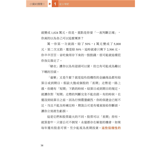 這是它們和股票最大的不同。股票可以「長期」持有,就算套牢,只要公司不倒閉,永遠都存在解套的機會,如果每年還有股息可領,至少能視為長期投資。這些投機性的金融商品根本不讓你「長期」持有,而且絕對沒有股息可領,你對漲跌判斷正確與否,真的就如賭博一樣「一翻兩瞪眼」。