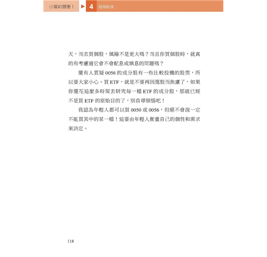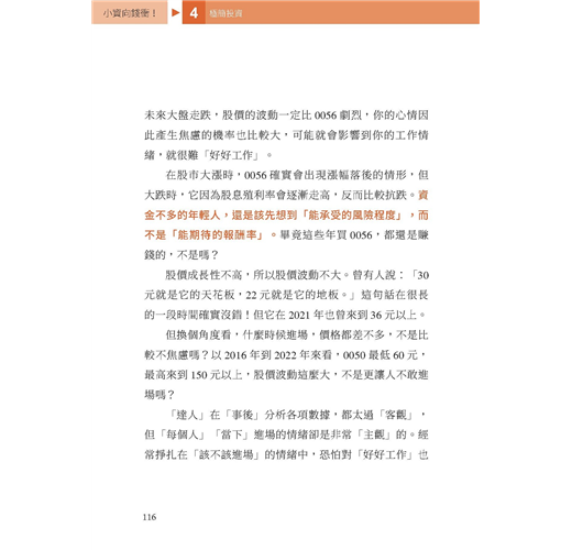 這本書雖然很多篇章還是和股票投資有關,但我更想與讀者分享的是「面對金錢的正確態度」,而且該在人生不同階段,讓錢用不同的形式來呈現。