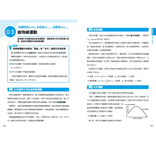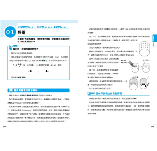書中彙整最重要的公式、科學定律與法則,以跨頁形式歸納基本內容,並透過生活實例示範該理論的應用範疇。