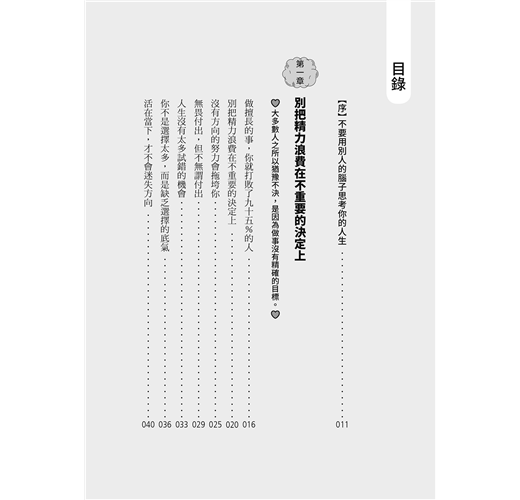 ◎在小事上猶豫不決讓人「貧窮」,虧的是人生。因為把精力浪費在不重要的決定上,就沒有時間做正事了。