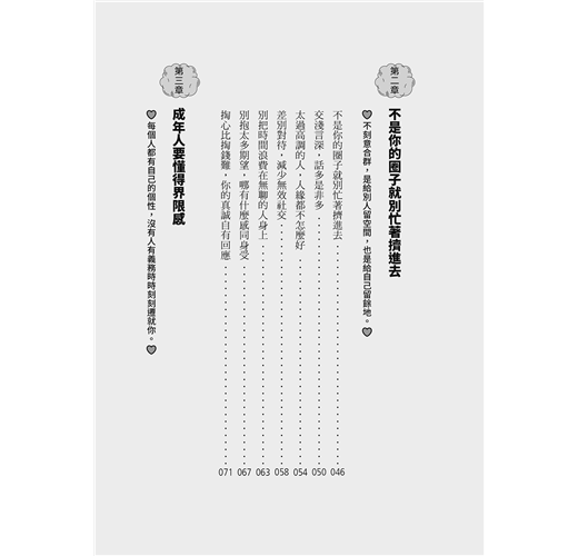 從人際關係、情緒心態、親密關係、自我管理等8個成長板塊,58條人生醒腦準則,字字戳心,專治你的「怕」、「不行」、「不敢」、「難」。