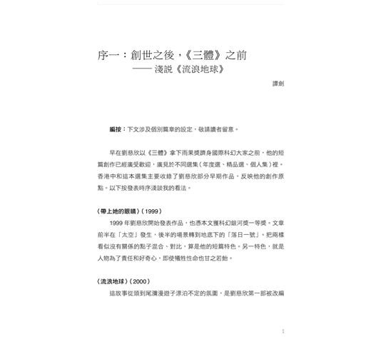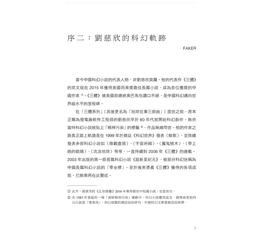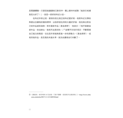 中國當代最具影響力的科幻作家,連續多年獲得中國科幻銀河獎,並獲全球華語科幻星雲獎、美國雨果獎(Hugo Award)、軌跡獎(Locus Award)及英國克拉克獎(Arthur C. Clarke Award)。作品《流浪地球》已被改編成電影。