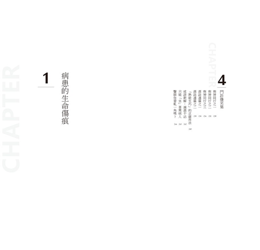 不過我覺得中西醫背景的他,最聰明的就是(或許也是意外)選了一個相當適合他人格特質的身心醫學科,因為他有廣闊無私的仁愛胸懷,所以面對門診裡對著他罵三字經或者只會盧小小的病患,他才能非常有耐心地、盡其所能地幫病患解決問題吧!如果是我,可能早就精神崩潰了。當然他一定也會有沮喪、挫折、火大、疲憊等等困難,但他卻從未逃避,也決不放棄,所以才有第三本書《診療室裡的傷痕:25個人生檔案的修復練習》的面世。