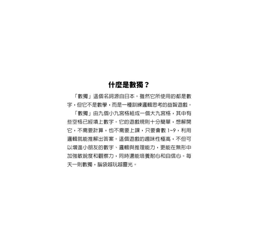 「數獨」(SUDOKU)是風靡全球的時尚數字遊戲,玩家遍布美國、歐洲、亞洲及澳洲,超過三十多個國家的報紙,都看得到這些九宮格子的蹤影。數獨被國際媒體冠以「全世界傳染速度最驚人的填字遊戲」,以及「21世紀的魔術方塊」等封號,可見其流行程度。