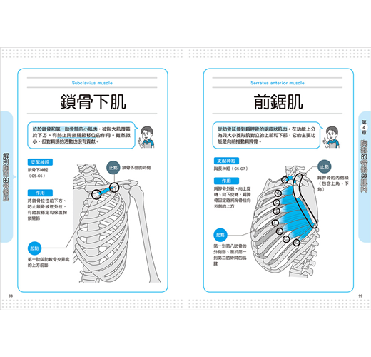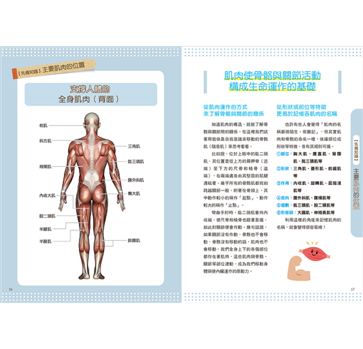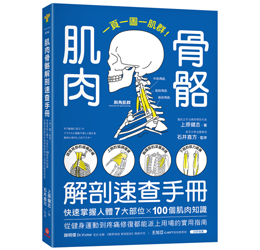 以「一頁一肌肉圖」的方式呈現,讓人一看就懂,且能迅速查詢。