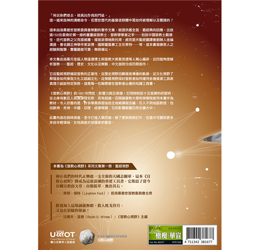 本書由洛桑普世宣教委員會策劃,由一百五十位身處第一線的宣教士、學者執筆,為最權威、雋永的宣教經典文獻集。