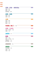 •對腎臟病患者需注意的營養含量,包含熱量、蛋白質含量、鹽含量、鉀含量、磷含量、水含量等日常生活中常使用的食品含量全部歸納整理出來,讓人一目了然。