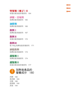 此外,本書也收錄了簡易的表格來表示一些數值的變化,例如會因食材上些許的增減,而影響蛋白質或其他營養素的增減,或者在煎煮...