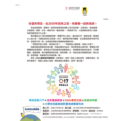 書封看似是給小學生的讀物,但書中的內容,無論哪個年紀,都很適合閱讀,透過可愛的插圖與漫畫,把SDGs的意義與精神都說明得很清楚,只要是地球人都應該來讀一讀哦!——陳人平(海湧工作室執行長)