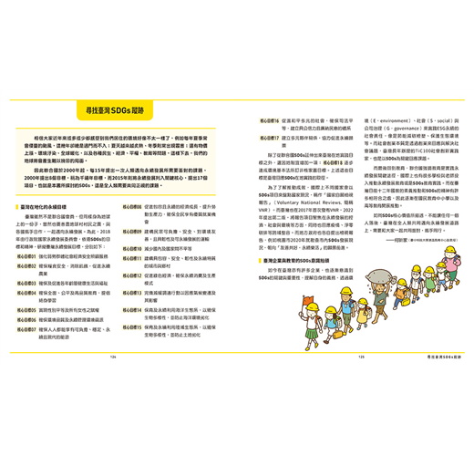 每章章末皆有日本監修池上彰先生提出的見解與解決之道,協助孩子更加熟悉此單元的精神。全書末亦有臺灣SDGs專家何昕家副教授專文撰述《尋找臺灣SDGs蹤跡》,可一覽臺灣目前SDGs的現況與進展。