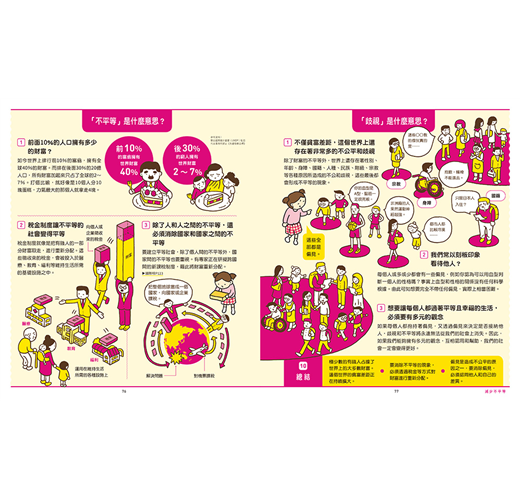 這本書雖然譯自日本,但我們和日本無論是地緣或是文化上都十分相近,同時中文版亦多處增加臺灣的相關資料和描述,因此透過書中的介紹,除了可以了解自身所處的環境問題,同時也可以擴展世界觀,藉由圖表剖析全球局勢,了解他國的處境和困難,以及臺灣在世界中所處的位置。