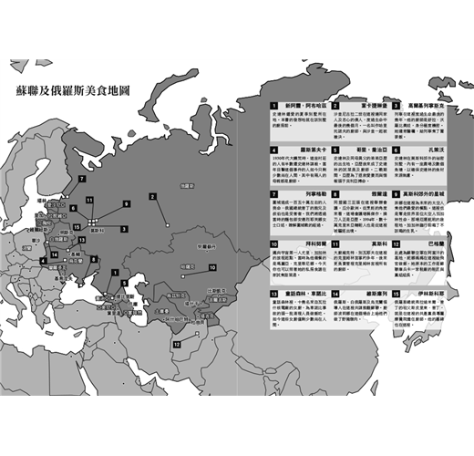你們會讀到史達林試菜員的故事,知道他為救愛妻性命而不惜冒著巨大風險與史達林的情報頭子搏命。你們也能見識到第一道飛上太空的湯品、末代沙皇尼古拉二世最愛吃的斑鳩麵,以及這兩道菜的食譜,更可以知道為什麼蘇聯領導人布里茲涅夫痛恨魚子醬。