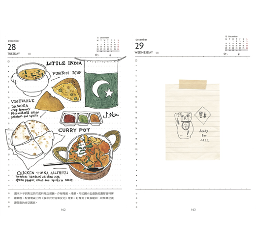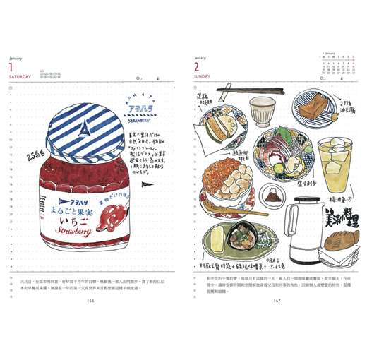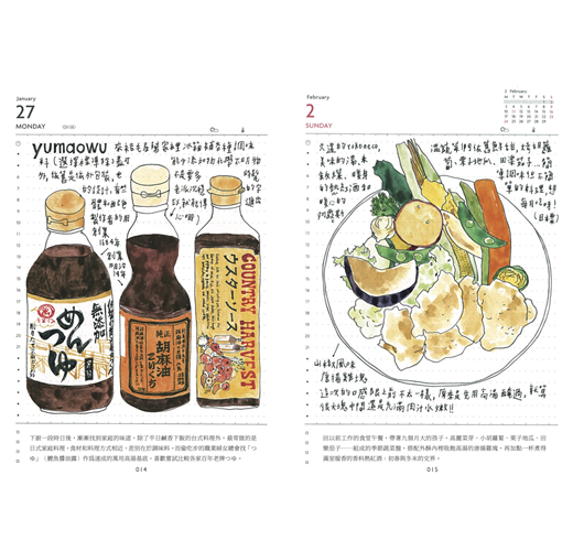 連續好多年,我會在一月一日那天,到書店挑選當年要使用的「一日一頁」手帳,象徵新年新希望的儀式。一日一頁的格式自由,彷彿在書寫生活之書;日子有時豐滿,有時潔白。我想每人心中或多或少都有「365日」的幻想,期許自己每天重複一件小事,每天能多堅持一點點,每天都能感知到美的時刻,或寫字或插畫或料理,點滴積累成豐碩果實。