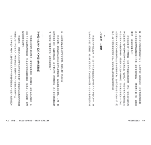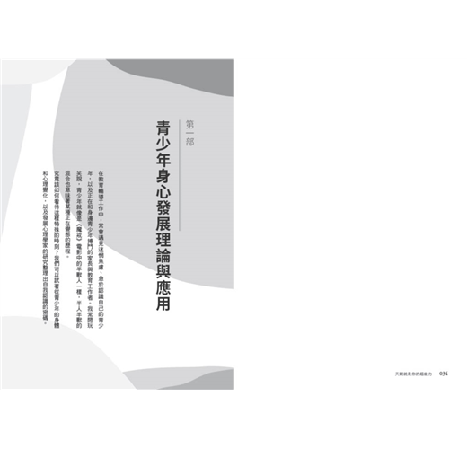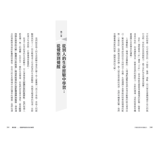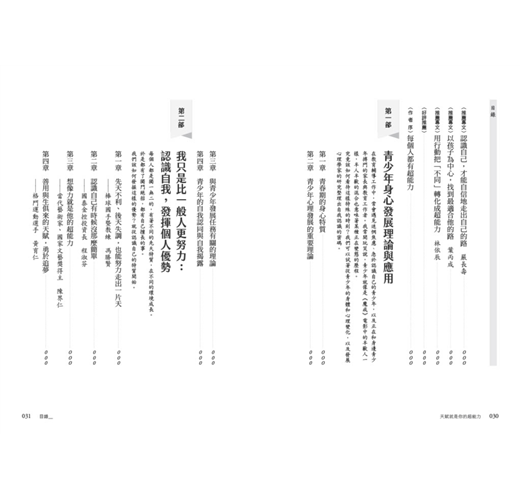 智鑛在《天賦就是你的超能力》中舉出的許多案例,成為教學上未來的想像,對於從事教育的工作者、家長或是青少年本身,相信都會有很大的幫助。最後我也想舉出一個例子,來結束這一段序文:我在學生時代,其實在學習上乏善可陳,但閱讀名人傳記,欣賞古典音樂,成為了我歷練自己的一個重要的工具,它們讓我能夠沈澱自己,也讓我透過各種名人傳記中,學習到一個人人格特質的養成,藉由穿透這些人的生命歷程,讓我在最短的時間裡學會做人該有的操守。