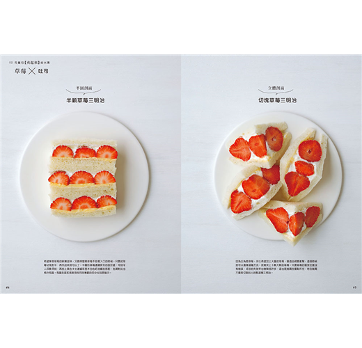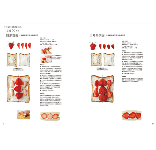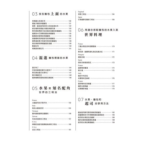 本書羅列各種不同的季節水果,不管是放在吐司上還是夾起來甚至混進麵包裡,列出花樣百出的組合方式,無論是作為早餐、點心還是派對用,都能讓你輕鬆組合出漂亮又美味的水果三明治!