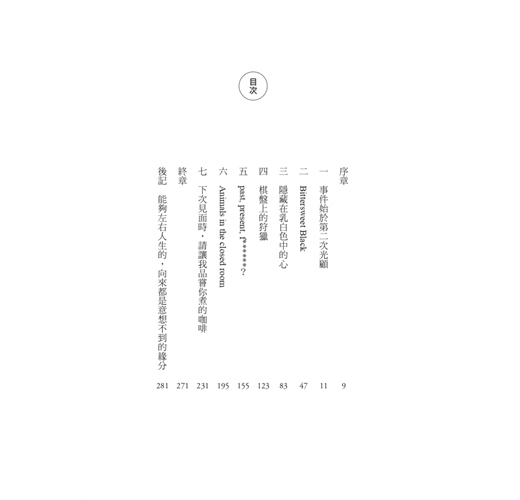 相關著作:《咖啡館推理事件簿5:願這杯鴛鴦奶茶美味》《咖啡館推理事件簿8:實現願望的瑪奇朵(限量隨書附贈2025年曆書衣海報 )》《咖啡館推理事件簿2:夢見咖啡歐蕾的女孩》《咖啡館推理事件簿7:將方糖沉入悲傷深淵(百萬暢銷系列十週年最新續集)》《咖啡館推理事件簿7:將方糖沉入悲傷深淵(限量扉頁作者親簽版.百萬暢銷系列十週年最新續集)》《下北澤搖滾推理事件簿【博客來獨家親簽扉頁】(「咖啡館推理事件簿」系列作者最新力作╳五道燃燒夢想的青春謎題)》《下北澤搖滾推理事件簿(「咖啡館推理事件簿」系列作者最新力作╳五道燃燒夢想的青春謎題)》《咖啡館推理事件簿6:盛滿咖啡杯的愛》《咖啡館推理事件簿5──願這杯鴛鴦奶茶美味(加贈限量書衣海報)》《旋轉木馬推理事件簿(作者親筆簽名扉頁╳戀愛系插畫家Zzifan_z繪製書衣+日文版精緻書封 雙封面珍藏)》《旋轉木馬推理事件簿(戀愛系插畫家Zzifan_z繪製書衣╳日文版精緻書封 雙封面珍藏)》《咖啡館推理事件簿4:休息中,咖啡的五種風味(附贈書衣海報「充滿咖啡香的每一天」)》《咖啡館推理事件簿3──令人心慌的咖啡香》《咖啡館推理事件簿2──夢見咖啡歐蕾的女孩》