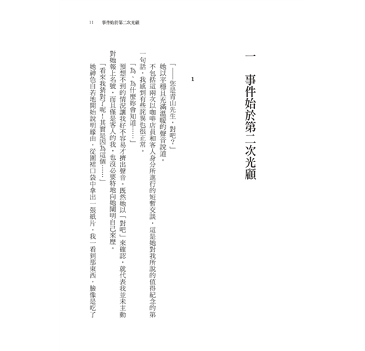 青山喜歡漫步在京都的街道、迎接祇園祭,享受京都木屋町的「家常菜」。第一次到「塔列蘭」沒付錢,之後他卻成了常客,隨著冰滴咖啡、越南白咖啡、摩卡咖啡一次次端上桌,他以為與店內的咖啡師切間美星已經成為無話不談的好友……