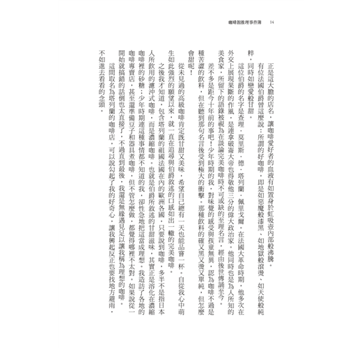 尋找著讓自己安下心來寫作的咖啡店,岡崎琢磨醞釀出「咖啡推理」交織「京都生活」的獨特故事,每品嘗一杯咖啡,總出現一個令人意想不到的祕密;隨著連鎖咖啡店的興起,愈來愈多的個性咖啡店突顯出在地的特色,同時瀰漫著人情味與咖啡香,隨著作者在書中的指引,你也找到屬於自己的咖啡店了嗎?