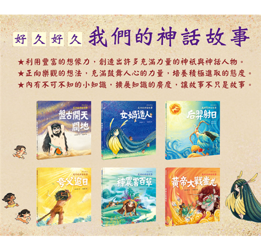 上古神話雄渾古樸、絢爛多姿,孩子可透過閱讀這些從古流傳至今的故事,從中體會各種寓意,並將其傳遞下去,這也是此系列繪本的創作理念。接著,就讓我們一起看看這些有趣的神話故事吧!