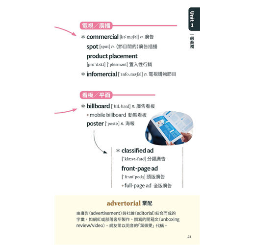 記憶單字的關鍵在於融入情境,才能將所學達到內化的境界。本書不僅適合正在籌備多益的考生,也適用於想加強商用字彙的上班族。從現在起,擺脫枯燥乏味的條列式學習模式,跟著本書開啟一趟心智圖單字記憶的奇幻旅程!