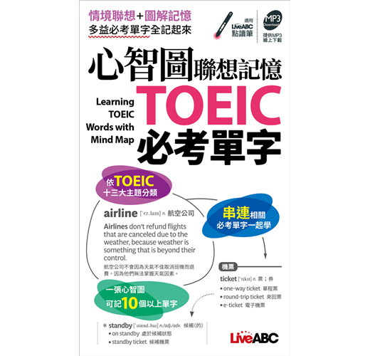 本書根據ETS(美國教育測驗服務社)公布的多益測驗考試內容的十三大主題分類,使用心智圖(Mind Map)歸納並串連多益必考單字,幫助聯想記憶。